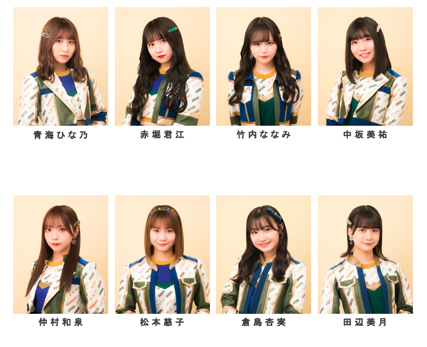 青海ひな乃、赤堀君江、竹内ななみ、中坂美祐、仲村和泉、松本慈子、倉島杏実、田辺美月