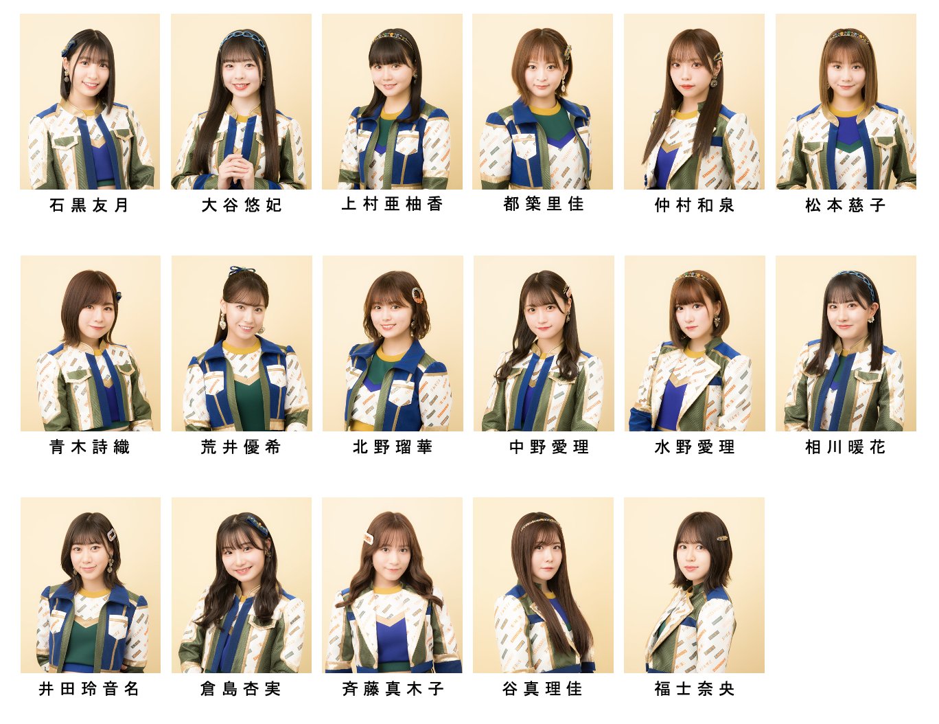 石黒、大谷、上村、都築、仲村、松本/青木詩、荒井、北野、中野、水野/相川、井田、倉島、斉藤、谷、福士
