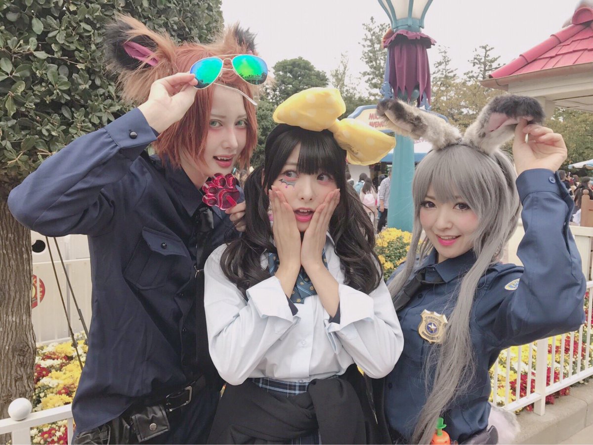 昨日歩いてる時にとっても可愛いコスプレをした方達が通り過ぎて、後を追いかけて一緒に撮ってもらったの